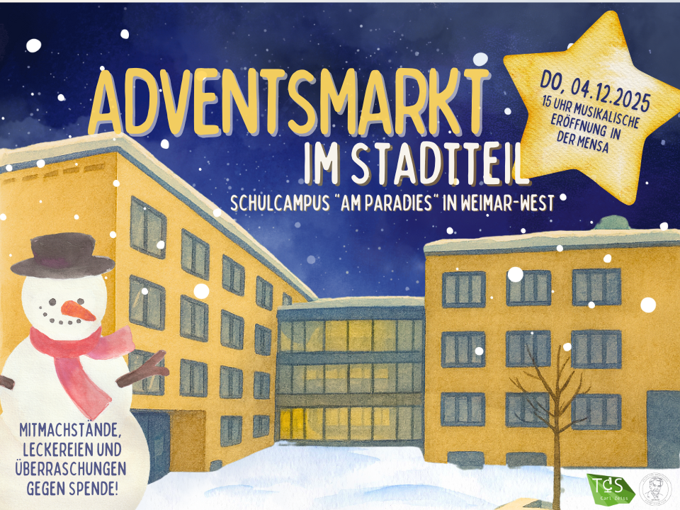 wir laden Sie/Euch herzlich zum traditionellen Stadtteil-Adventsmarkt am Schulcampus „Am Paradies“ ein.